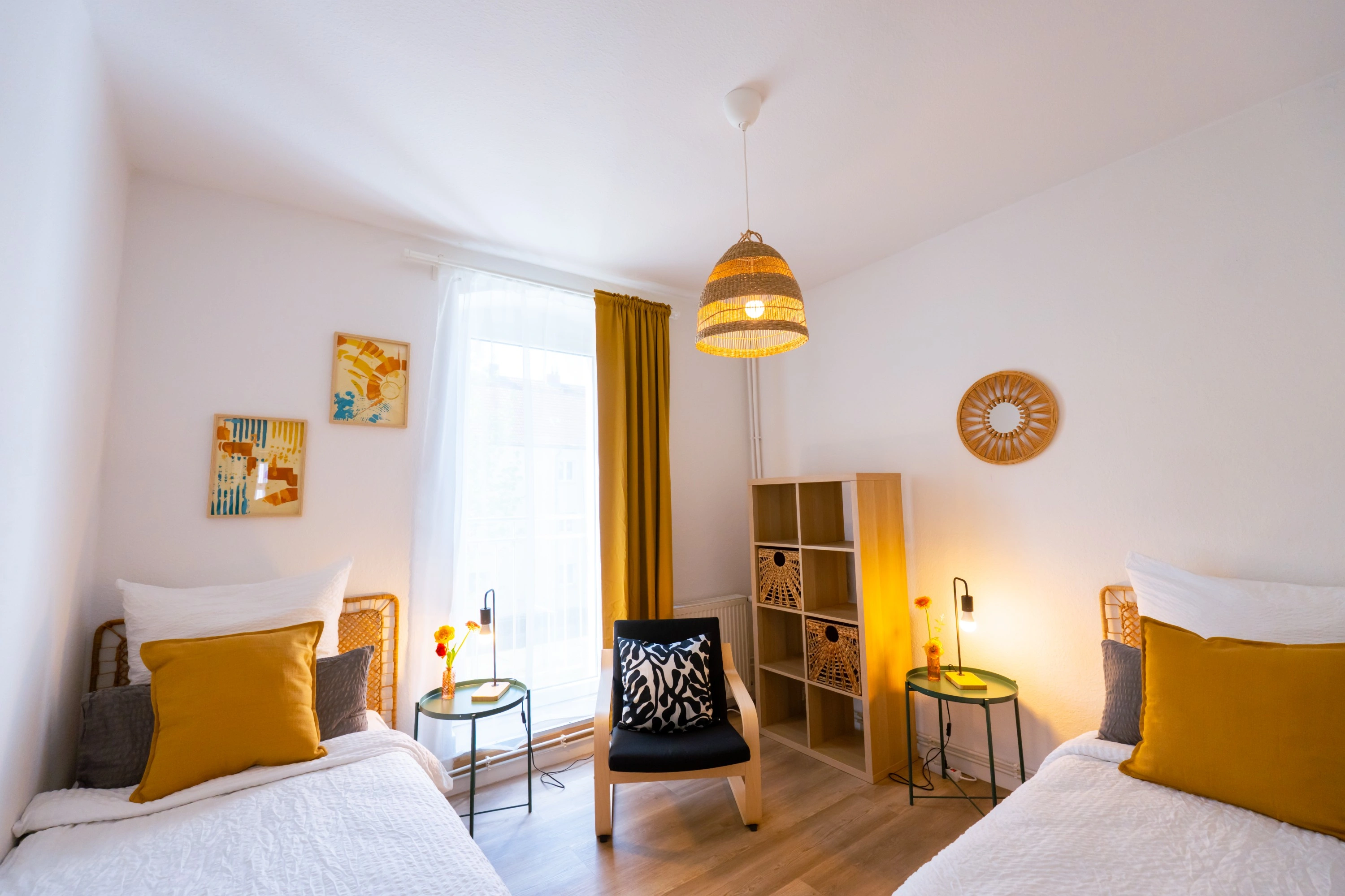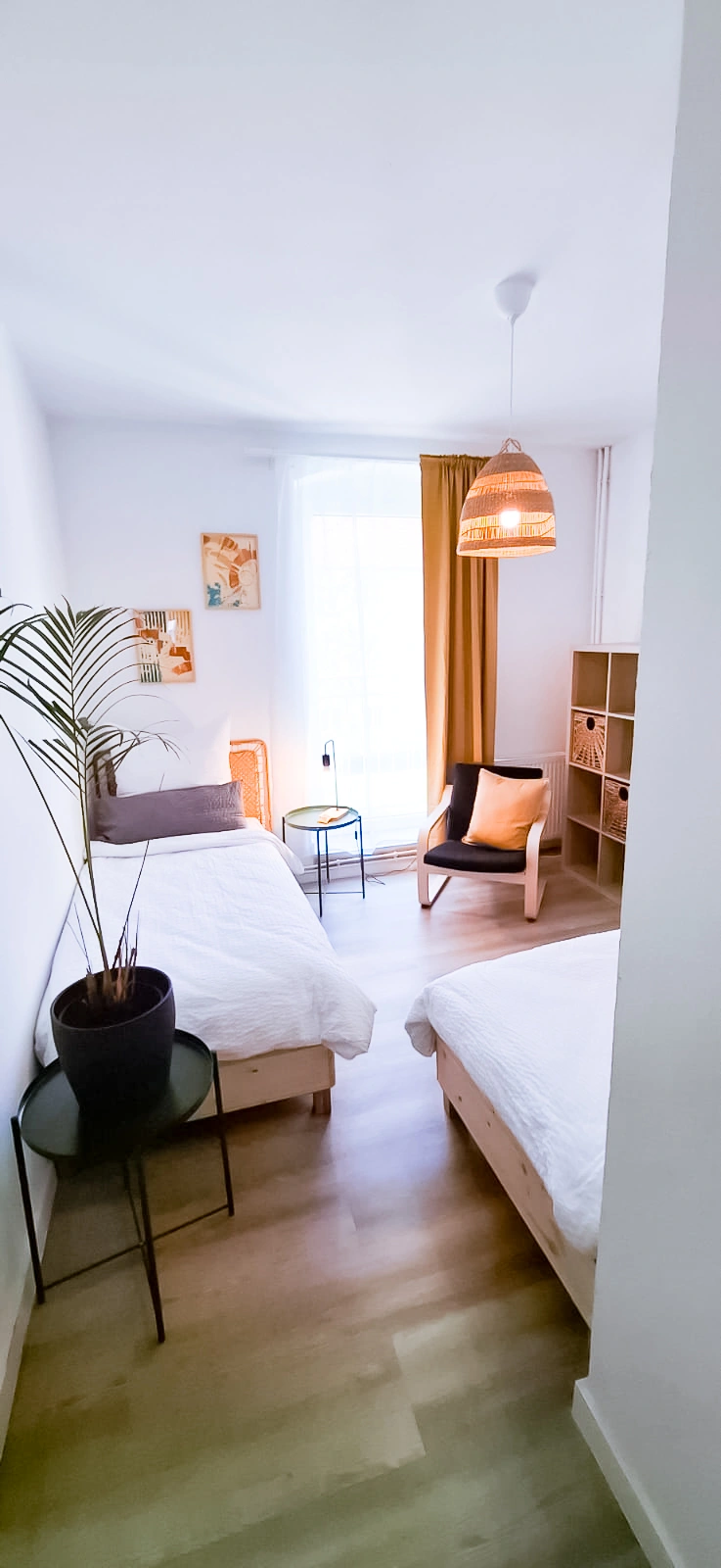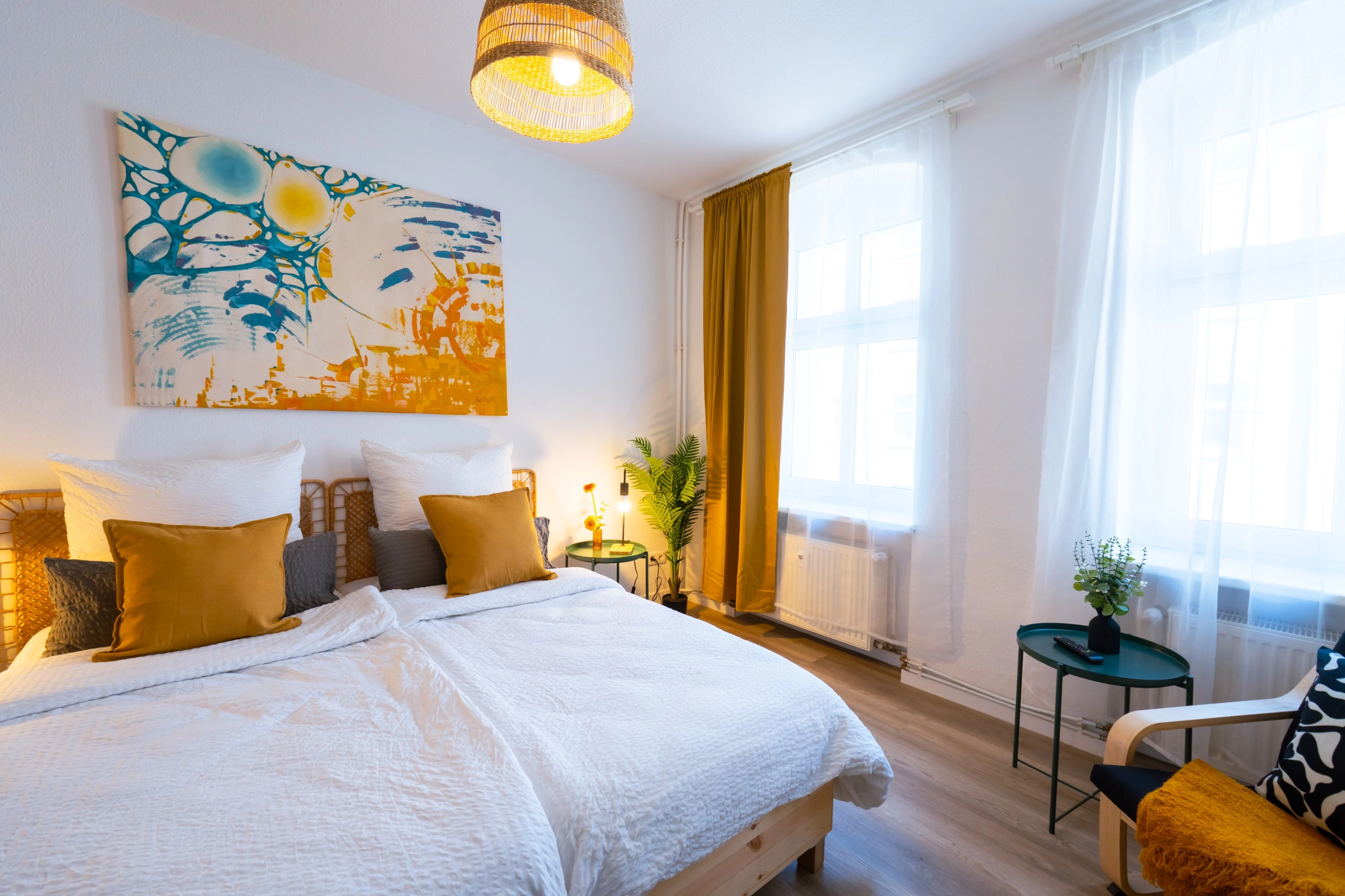 Wohnung war Stilvoll eingerichtet und die Betten sehr gut. Dazu alles geräumig gehalten. Fernseher hatte ein großes Bild. Und jedes Schlafzimmer hatte einen eigenen kleinen Schreibtisch. Dazu ein 2 Platten Induktionsfeld für die Küche. Die Bahn fast vor der Tür bringt einen Einfach ins Zentrum von Berlin.